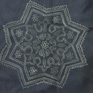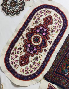 شروع دوختن: انتخاب کنید اولین رنگ نخ را و با سوزن دوزی، با دقت و تمرکز طبق طرح روی پارچه دوخت کنید.