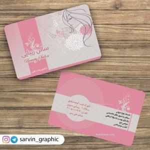 نمایشگاه هنر ایران: از آنجایی که آرایشگاه زنانه مربوط به مشاغل زیبایی می باشد، در طراحی کارت ویزیت های این دسته، از شیپ ها و لایه های مرتبط با این شغل و رنگبندی خاص استفاده شده و به دلیل تلاش برای رعایت اصول طراحی، از فضای صنعتی دوری شده که پرستیژ مربوط به این شغل حفظ شود. این دسته بندی شامل طرح های کارت ویزیت مرتبط با مجموعه آرایشگاه زنانه می شود.