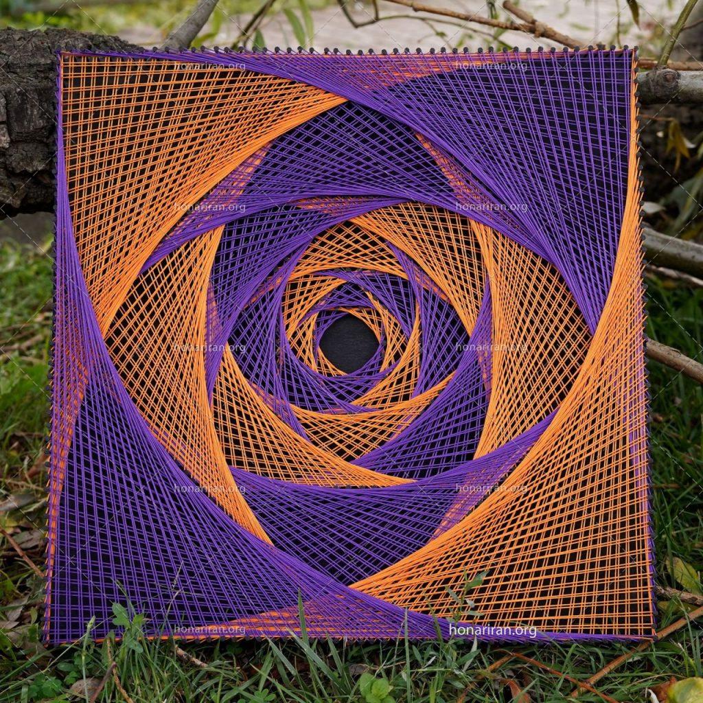 رنگها (اختیاری): ممکن است برخی از هنرمندان از رنگهای مختلف برای تزئین و طراحی هنر استرینگ آرت استفاده کنند.