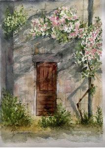 نقاشی آبرنگ روشنا منظره و گل